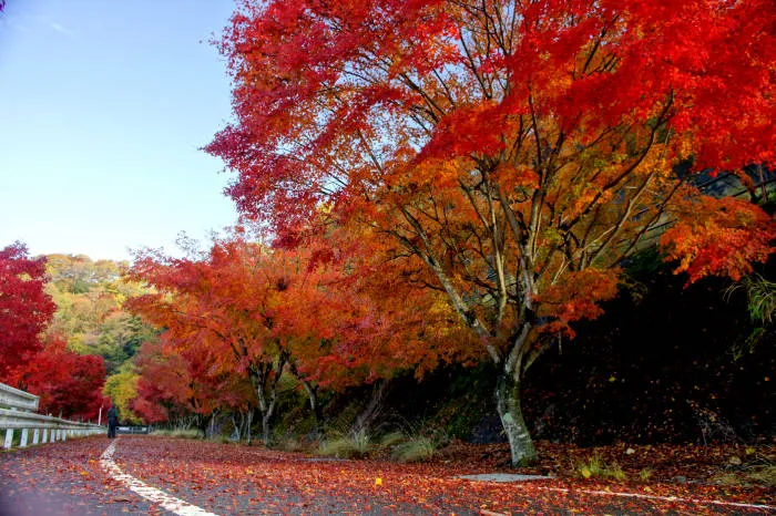 山の斜面が崩れたとかで道路封鎖されてて乗り入れはできなかったものの。期待通り真っ赤っか。